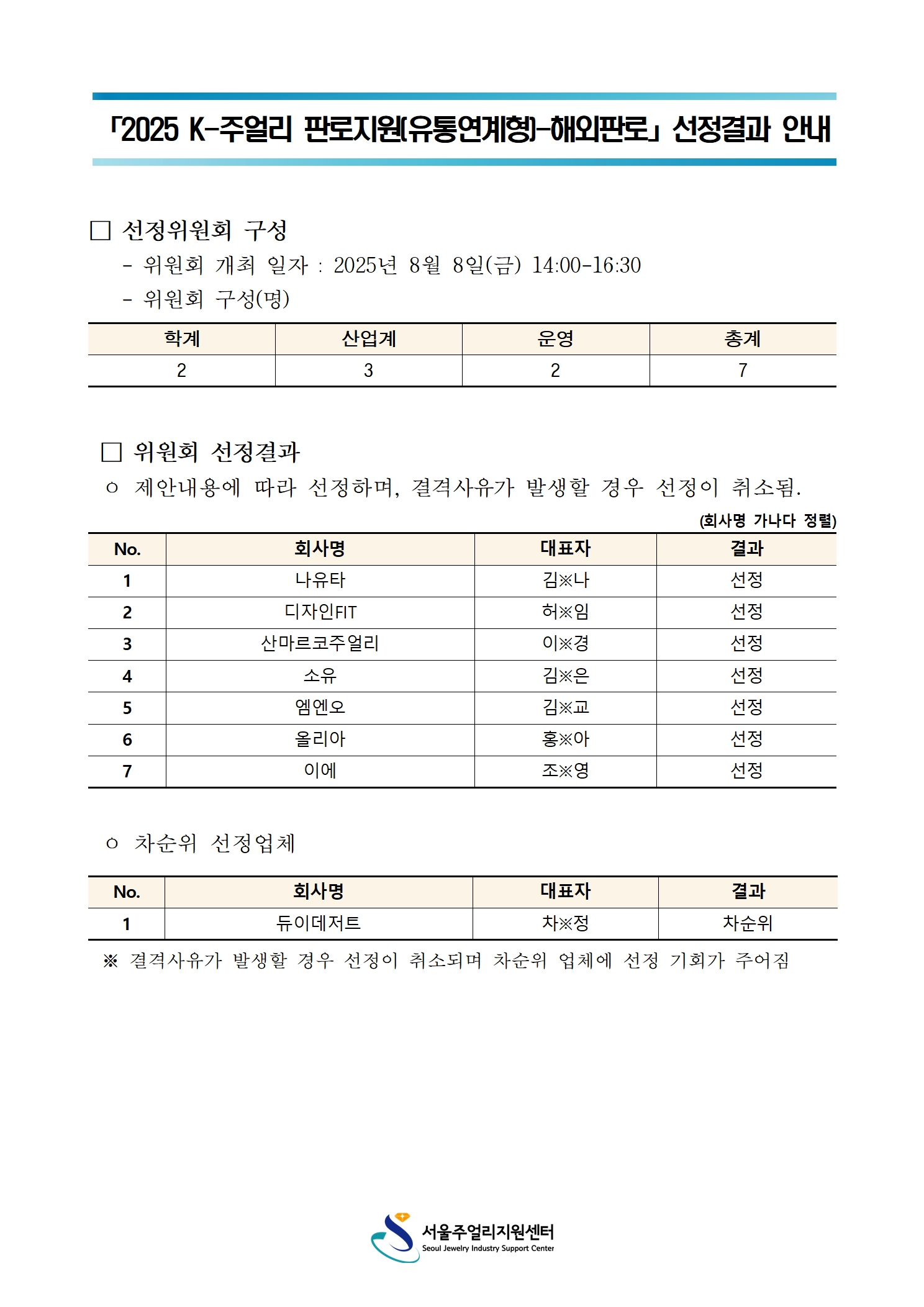 "2025 K-주얼리 판로지원(유통연계형)-해외판로"와 관련하여 많은 관심과 참여에 감사의 말씀을 드리며,
